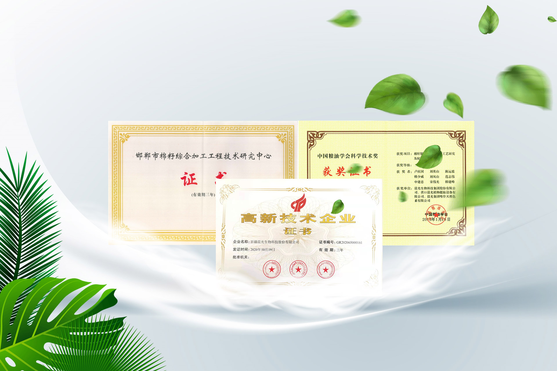 自主知識產(chǎn)權(quán)的專利93項,其中發(fā)明專利18項,實用新型專利75項。參與制定了國家供銷合作行業(yè)標(biāo)準(zhǔn)GH/T 1262—2019(棉籽殼)、國家農(nóng)業(yè)行業(yè)標(biāo)準(zhǔn)(棉籽品質(zhì)快速測定 近紅外法)